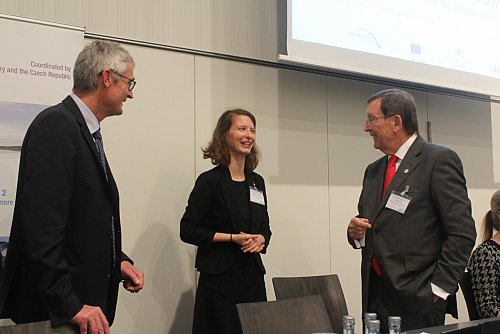 The opening remarks were delivered by Mr Pál Ságvári, the Hungarian Ambassador-at-large for energy security and the Hungarian Priority Area 2 coordinator. He shortly presented the up-to-date cooperation of Priority Area 2 with other regional stakeholder and stressed the importance of mutual collaboration and knowledge sharing among present stakeholders. The first presentation by Mr Harald Egerer showed the experience of the Carpathian Convention with multi-level and multi-policy stakeholders. He pointed out the need to establish a system of partnership as a key element for successful cooperation which can overcome the challenge of specific needs of each organization. Another very important stakeholder taking part in the panel was the Danube region is the International Commission for the Protection of the Danube River, which has been represented by Mr Ivan Závadský, the Executive Director, and Mr Peter Kalaš from the upcoming Czech presidency. Mr Závadský highlighted the mutual need of regional organizations and the EUSDR for cooperation, which leads not only to mutual support of joint goals, but also helps with project development. He also stressed that macro-regional strategies should play an important role in showing added value of macroregional project in the national frameworks. Mr Kalaš added that the challenges of the region require joint actions of the relevant stakeholders as well as high quality projects. Ms Egija Augule subsequently shared Latvian experiences with Priority Area Energy of the EU Strategy for the Baltic Sea Region and the EUSBSR´s experience with engaging multi-level stakeholders and managing overlapping initiatives within the regions. Mrs Edina Csányi from the European Investment Bank introduced a new European Investment Advisory Hub, a tool for project development consultations, which can help not only national administrations, but also cooperation of various organizations in the Danube region to help to develop a joint project.