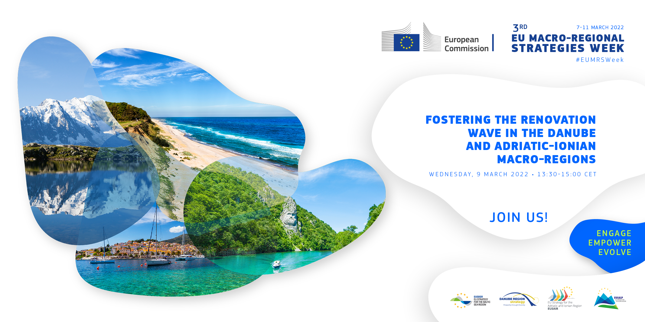 In the frame of the EU MRS Week EUSDR PA2 organizes a workshop titled “Fostering the renovation wave in the Danube and Adriatic-Ionian macro-regions” on 9 March 2022 13:30 – 15:00.
